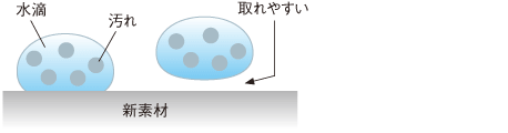 汚れの原因“水”をはじくから、さっとふくだけでキレイに。