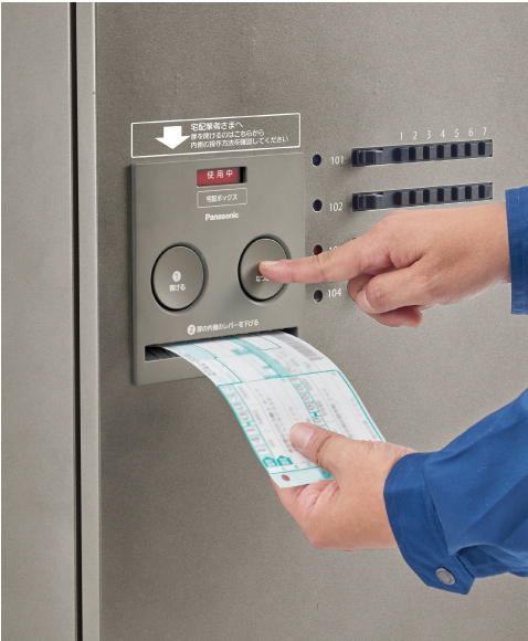 パスコードで開錠。宅配スタッフが引き取って完了。