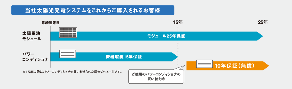 ※3.パワーコンディショナとセットで交換した接続箱は15年保証になります。 ※4.同時交換の接続箱含む。ただし、接続箱単品での買い替え保証は対象外となります。 - 保証の内容