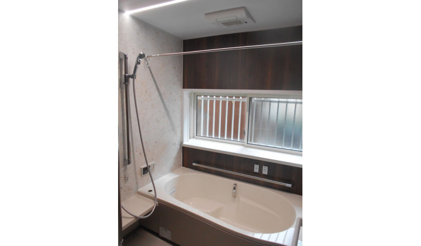 築30年の戸建てで、寒さと段差を改善するための水まわりリフォームです。浴室には床暖房・暖房換気乾燥機・酸素美泡湯を導入し、冬場でも快適なバスタイムを実現しました。浴室サッシをペアガラスに変更し、省エネ住宅ポイントも活用。手すり兼用のスライドバーでバリアフリーにも配慮し、将来を見据えた安心設計にしています。二世帯6人の暮らしにやさしい、あたたかく掃除もしやすい浴室に生まれ変わりました。