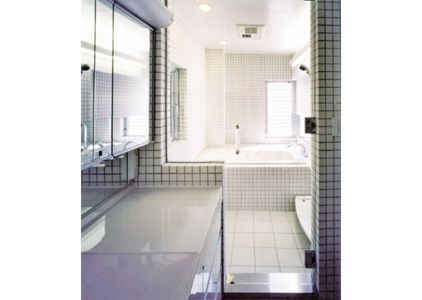 鏡は縦長のものが主流ですが、空間が広く見えるということからワイドミラーも最近は増えており、機能面でも、曇らない機能が付いているものなど様々です。ドアも、通常の開き戸の他に、折れ戸や引き戸などが選択できます。そのほか、壁の色は圧迫感がないか、カウンターは使いやすいかなど、後々の不満につながらないよう、実物を見てチェックしておきましょう。