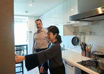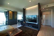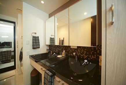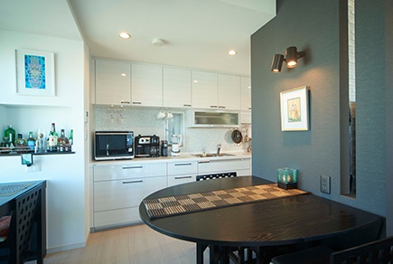 眺めのよい築9年のタワーマンションにお住まいのJ様。ビルトイン洗濯機が壊れたことをきっかけに、洗面台、バスなどのリフォームを検討し始めました。商品を見るために、パナソニックのショウルームヘ足を運ばれ、リフォームのコンシェルジュにご相談。使い勝手が悪く、気になっていたLDKも一緒に見てもらうと、リフォーム会社の現場担当者からは思いがけないLDK空間の提案を受けたそう。そのアイディアに心引かれ、バスルーム・洗面室・LDKとほぼ全面的なリフォームをすることにしました。