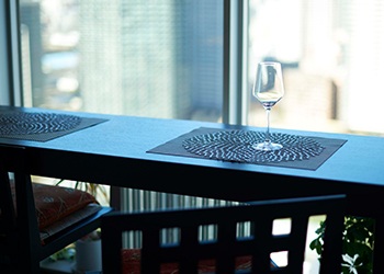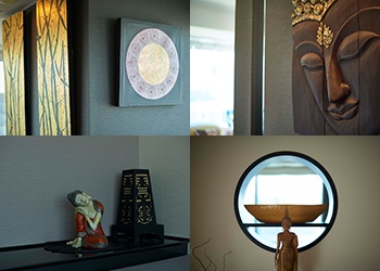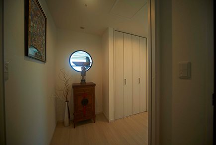 海外旅行が大好きで各国で個性的な小物を購入し、家のあちこちに飾るのが楽しみとおっしゃるご夫婦。家具や小物は一切変えていないそう。 シックな内装の中でオリエンタルな小物がアクセントになり、空間に彩を添えます。
