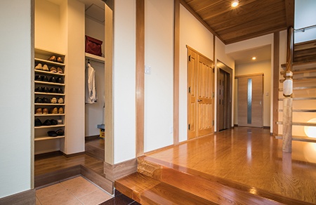 ここ数年で駅前開発によって、年々便利になっていく人気エリアの一角に佇む閑静な住宅街にお住まいのK様。23年前に大分から取り寄せて設えた立派な大黒柱や一枚板で作られた玄関の小上がりなど、いたるところにこだわりがみられる住まいです。