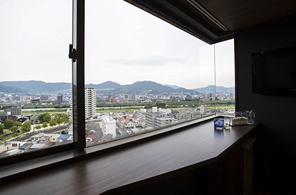 美しい川の風景を見下ろすマンション。眺めも良く開放的な20畳のリビングですが、実際の生活スペースはキッチンから一番離れた場所に置いたテレビのある一角だけ。