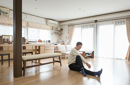 「仰向けで寝ると、背中が暖かくなって日向ぼっこしているみたいなんです 」と、ご主人は話します。実際、ご主人は、リビングの床にごろりと横になったり、床でストレッチをしたりするのがお決まりの過ごし方になったようです。