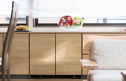 閑静な住宅地にあるM様邸。もともと中古住宅として購入され、阪神・淡路大震災による傷みをきっかけに建て替えられた築21年目の住まい。当時小さかったお子様たちは独立され、今はご夫婦二人暮らし。「薄暗い」「寒い」という日々の不満はあったものの、決定的な不具合はなく、これから先の暮らしを考えた時に元気なうちにリフォームをしておきたいと漠然と思っていらっしゃったM様。その気持ちを一変させたのが、ショウルームでのお部屋のシーン展示とコンシェルジュとの出会いでした。