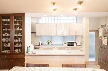 明るく生まれ変わったオープンなキッチンに、ご主人も「いいね、明るくなったね」とご満悦。ダイニングテーブルに座るご主人とキッチンに立つ奥様の会話もスムーズで、以前より弾むようになったそうです。
