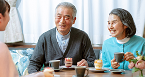 ご家族とのだんらんやご入居者同士の交流を楽しめる、心安らぐプライベート空間。ゆったりとした穏やかなひとときをお過ごしください。
