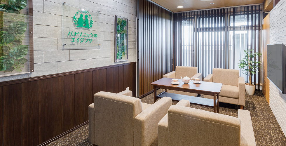 ホテルラウンジをイメージした空間で、ご家族やご入居者同士、ゆっくりとお過ごしいただけます。