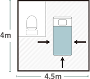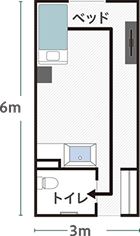 車いすでトイレまで移動できるようスペースを取ってベッドを配置。