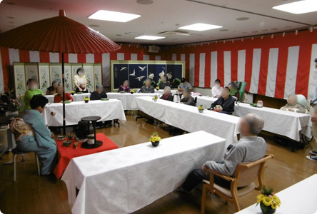毎月行われる茶道の会も、1月は華やかな初釜の会として開催します。