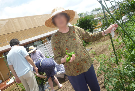 施設内の菜園。季節の野菜を育て、収穫し、召し上がっていただきます。
