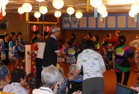 納涼盆踊り大会。ご家族や地域の皆様もご参加いただく賑やかなイベントです。
