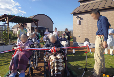 平成26年秋、「リハビリ庭園」として屋上をリニューアル。オープン式典のテープカットです。