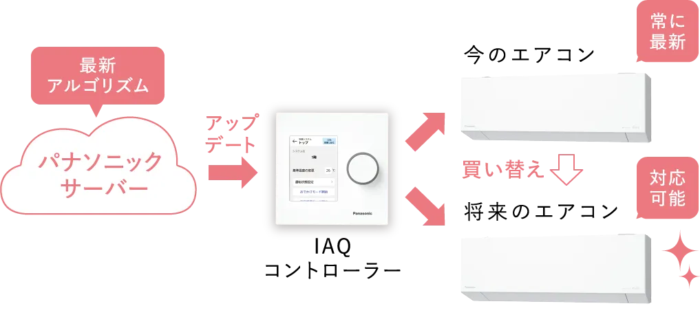 IAQコントローラーは、自動でソフトウェアのアップグレードを実行※。常に最新のアルゴリズムで、空気の快適さと省エネ運転を両立します。