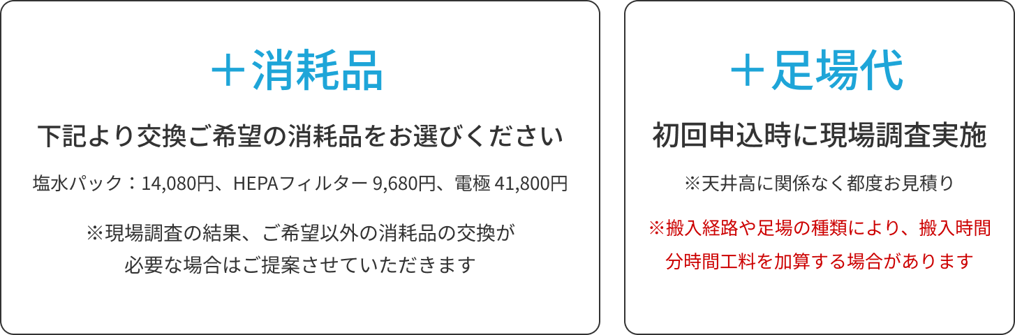 お手入れ(清掃)、機器の使用状態確認、消耗品交換を行うお得で安心なプランです。