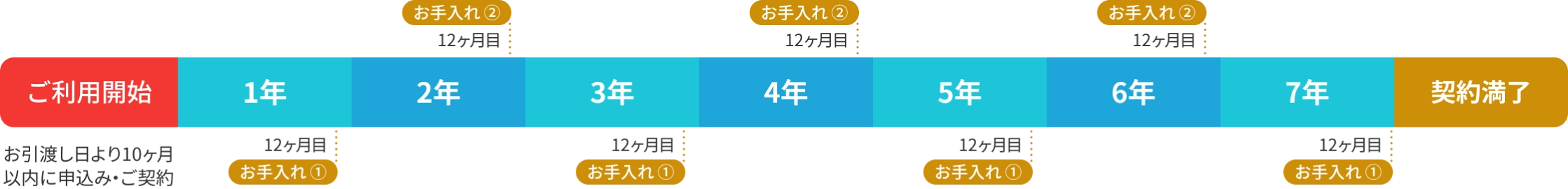 ・定期お手入れサービスのご契約期間は、メーカー保証期間(1年)終了後から最大6年間で契約満了となります。