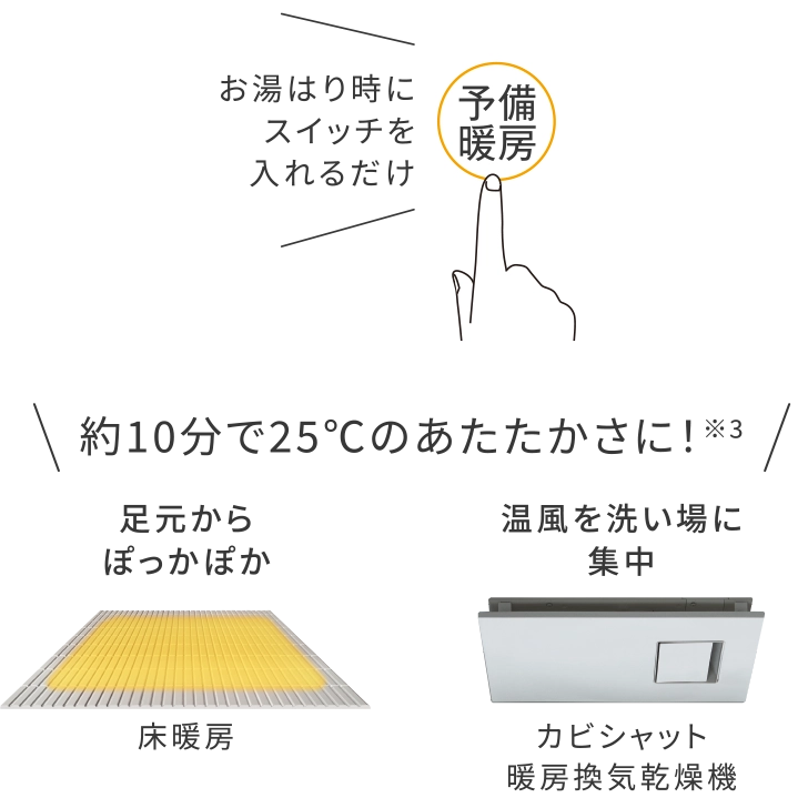 業界唯一※!電気式「床暖房」搭載のバスルーム