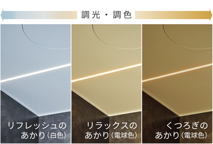 くつろぎの電球色の光まで。