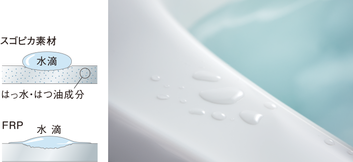 汚れをはじくはっ水・はつ油成分を練り込んでいるので「スゴくキレイ」が長く続く。