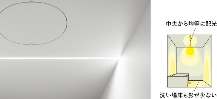 ライン状の照明を天井にフラットに納め、器具の存在感をなくしました。空間全体をすっきり照らし、スマートな印象に。