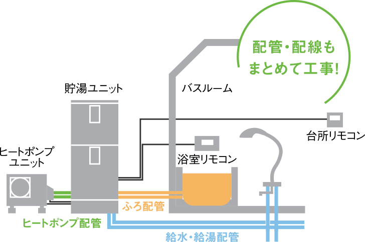 おふろの残り湯の「熱」をタンクにチャージ。夜間の沸き上げ量を節約。