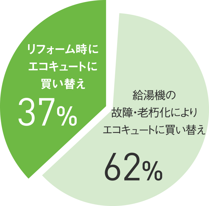- ※「エコキュート」の名称は電力会社・給湯機メーカーが家庭用自然冷媒(CO2)ヒートポンプ給湯機を総称する愛称として取り扱っております。