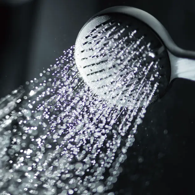 気分転換に、浴び心地のいい水流で全身を洗い流す。大盤ヘッドから降り注ぐシャワーは、水を浴びても気持ちいい。