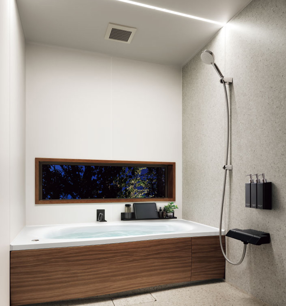 キレイが長続きする機能が満載のバスルームが展示されています。