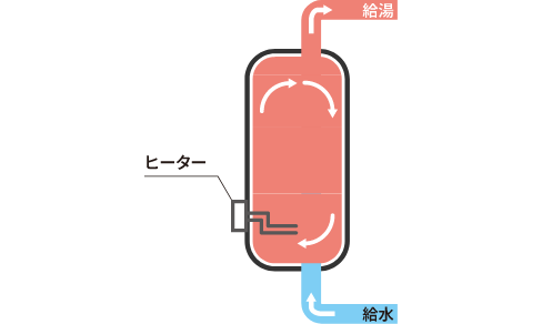 タンク下部のヒーターにより、タンク内の水を下から対流方式で、