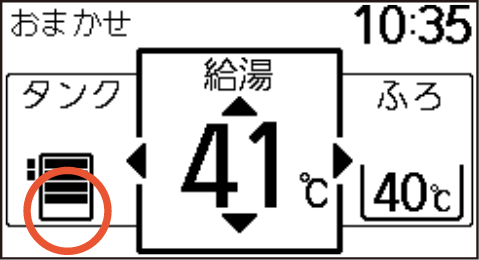 • 深夜にたくさんのお湯を使った翌朝は、満タンにならないことがあります。