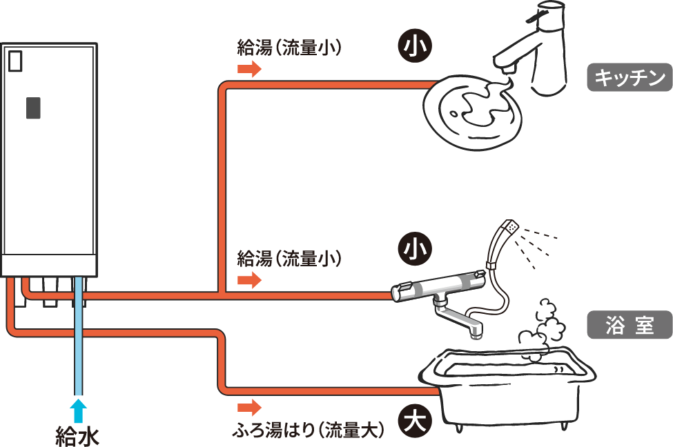 • Q 2か所同時にお湯を使用すると、お湯の出が悪くなりますか?