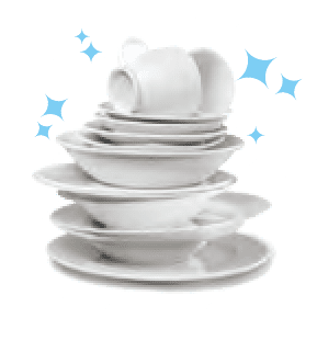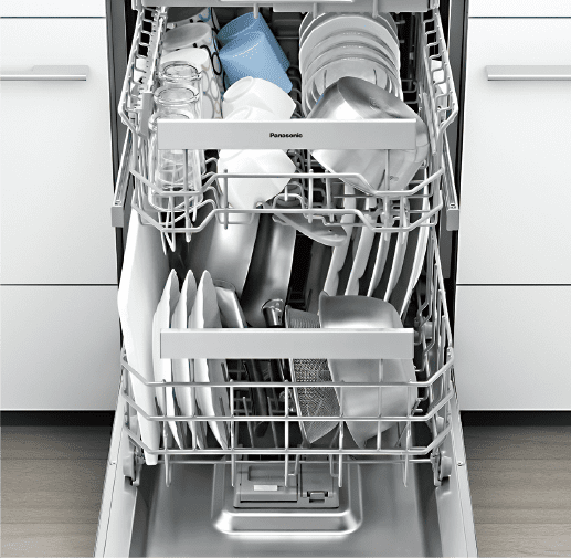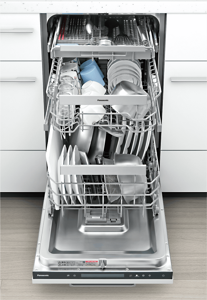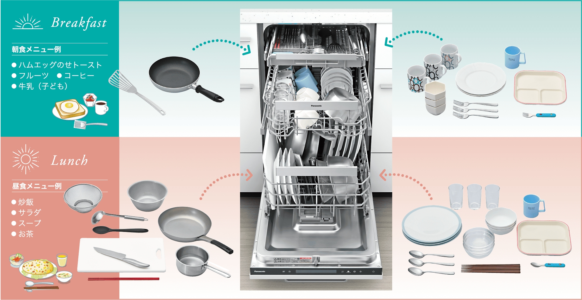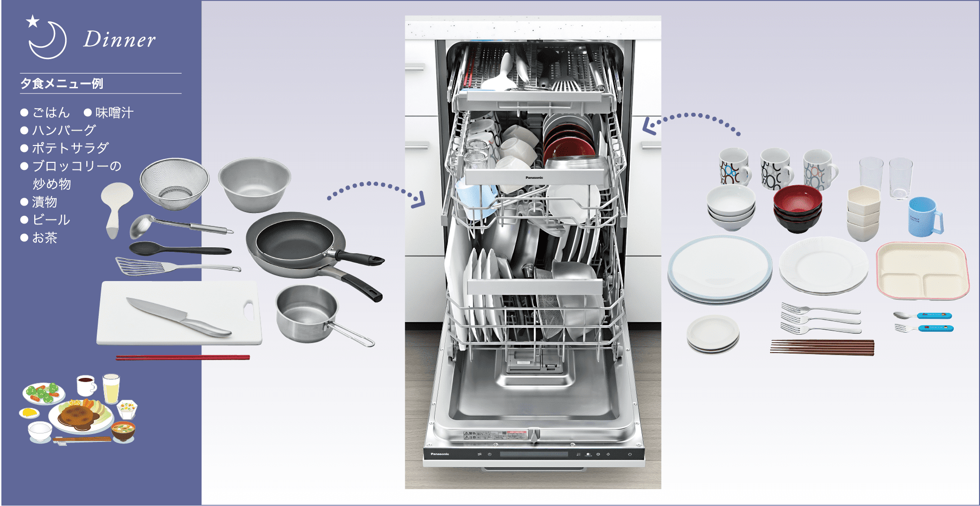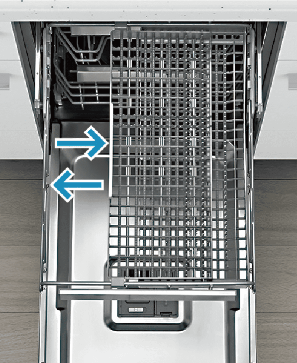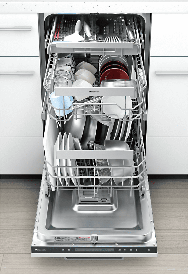 上カゴの食器類やカトラリートレイのカトラリー類をきれいに洗い上げます(※5)。