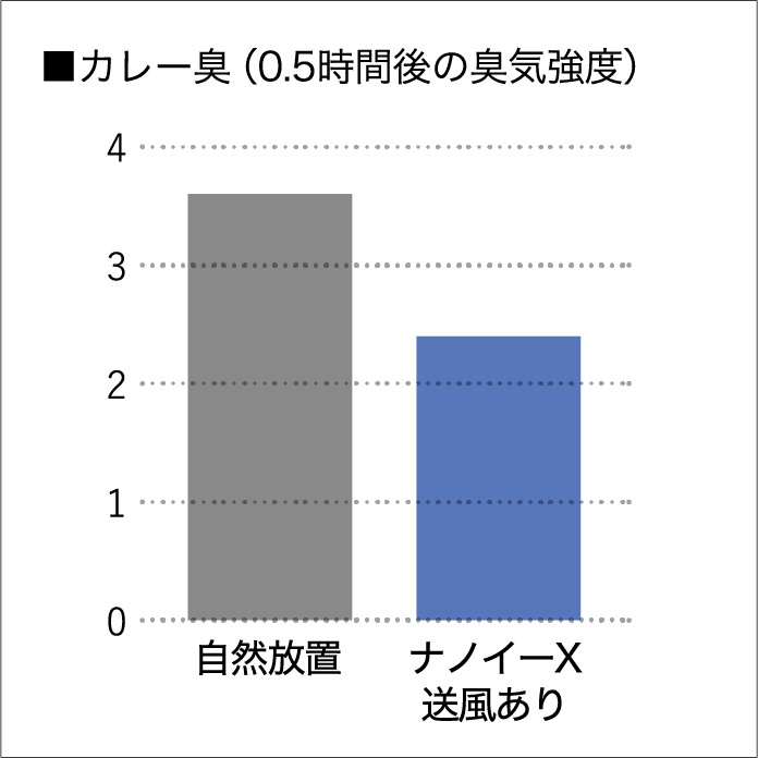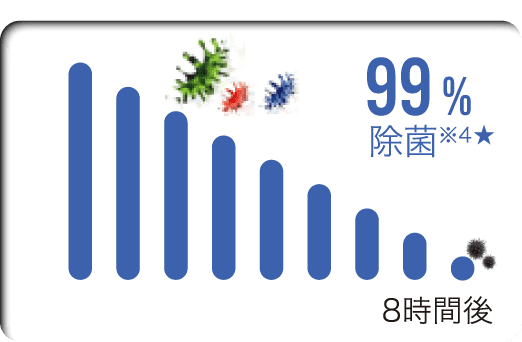 ナノイーX送風運転で、8時間後、菌の減少率は、99 %以上※4★です。- ナノイーX送風運転「強」設定使用時