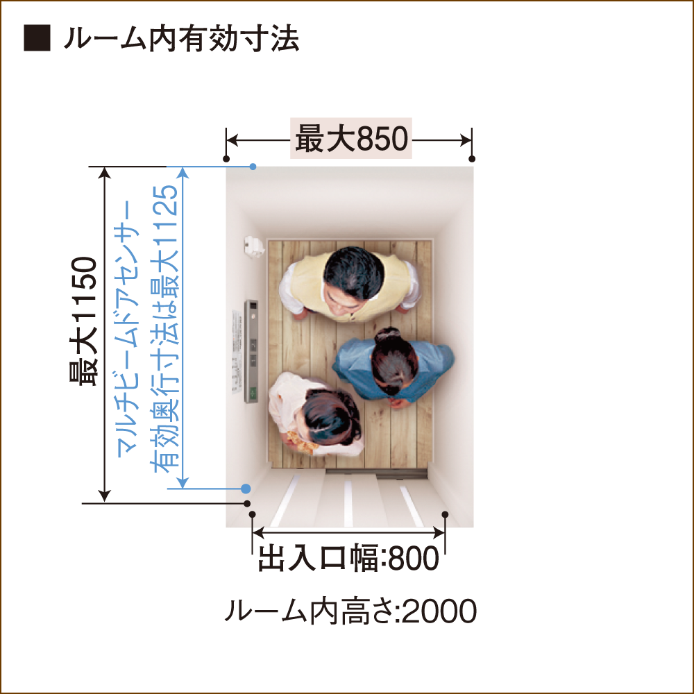 ルーム内奥行き最大1150mmの3人乗りモデル