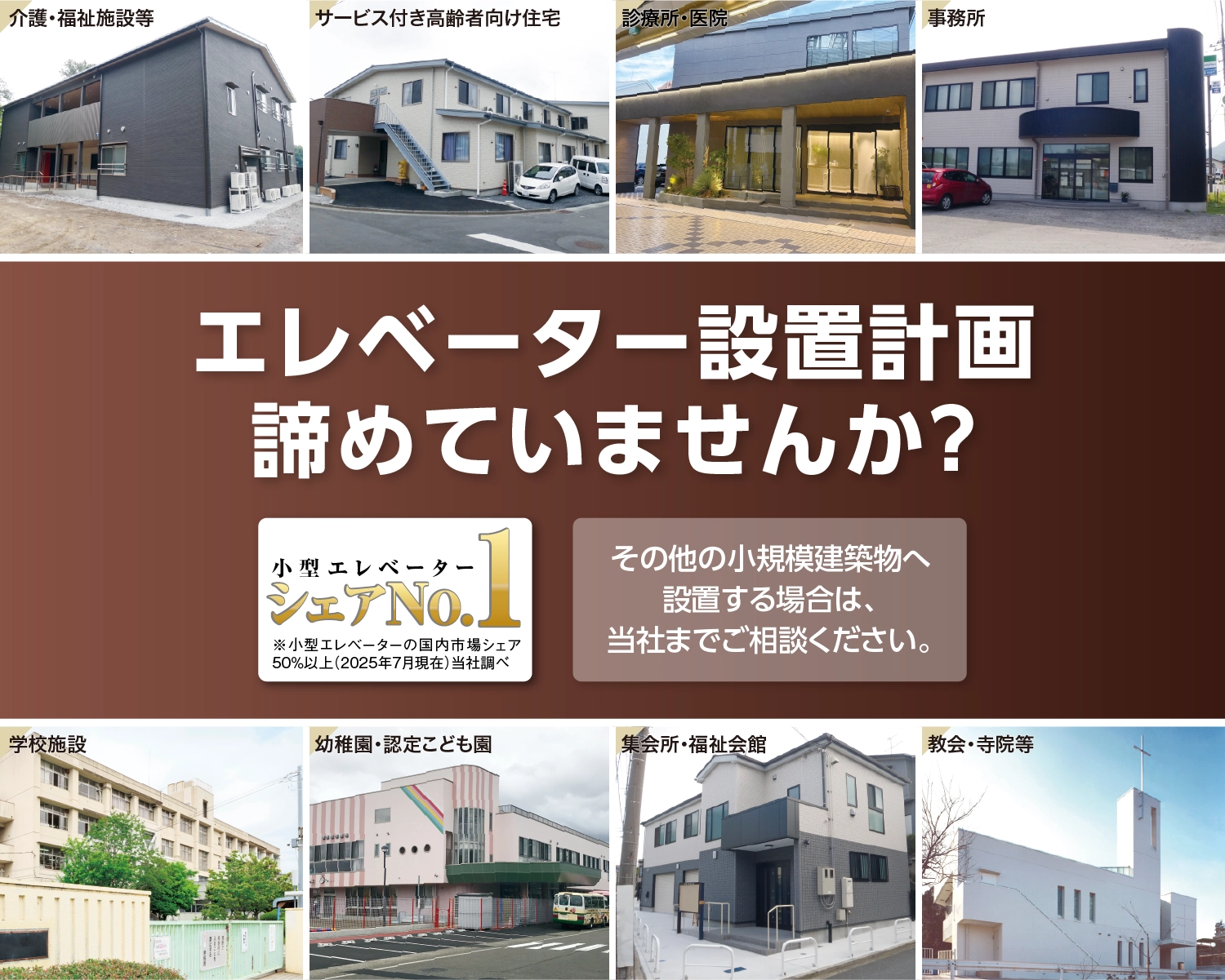 小型エレベーターは建物用途や利用条件に制限があるため、設置検討前に必ずご確認ください。