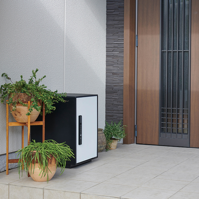 外出中でも在宅中でも宅配物が いつでも受け取れる宅配ボックス。