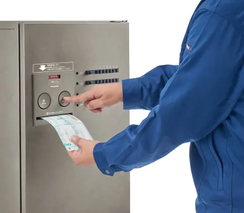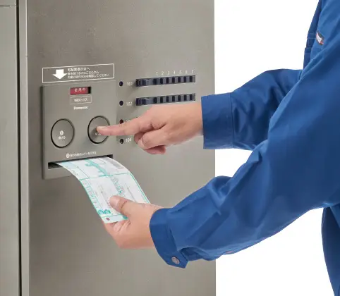 伝票差込口に伝票を入れ「なつ印」ボタンを押すだけ。1納品につき1回の押印でイタズラ防止の押印回数制限機構付きです。