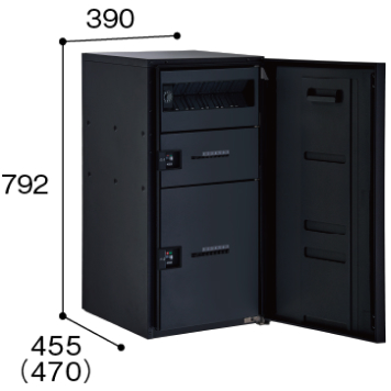 共通仕様 設置場所:屋外 材質:化粧扉・配達扉・本体 高耐食溶融めっき鋼板 粉体塗装
