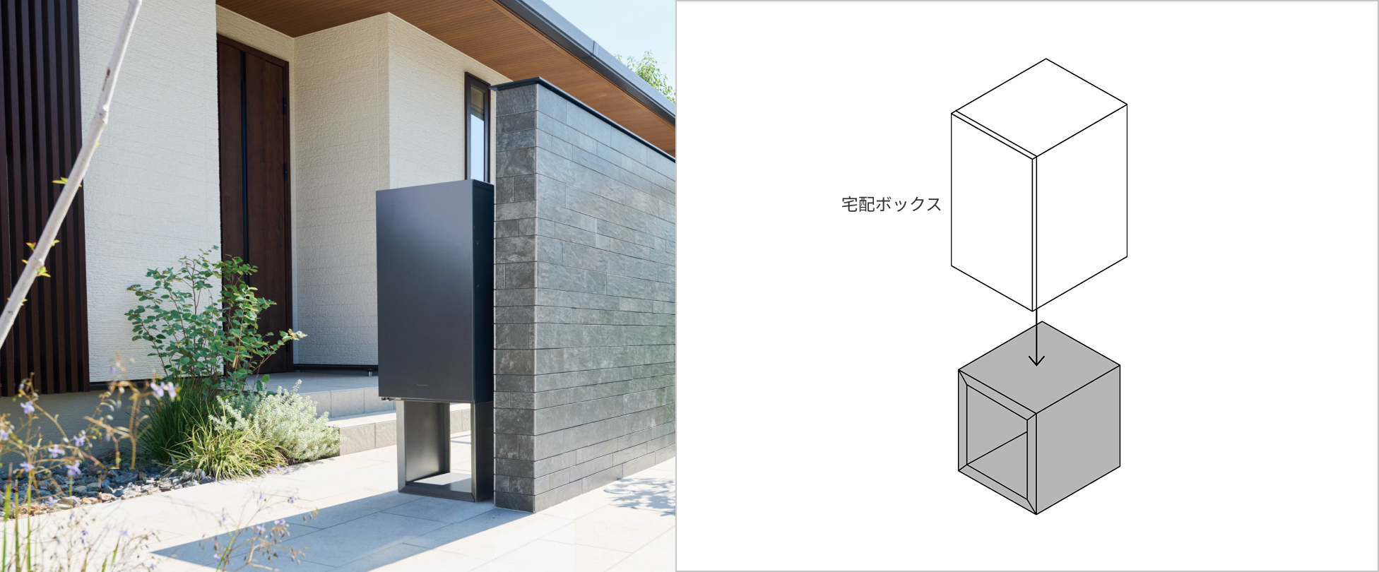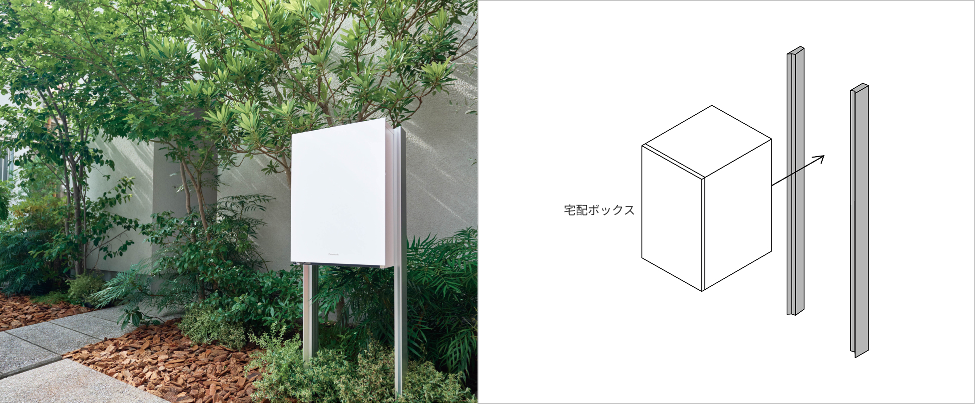 宅配ボックスをシンプルに設置できるポール。新築はもちろん既存住宅にもおすすめです。