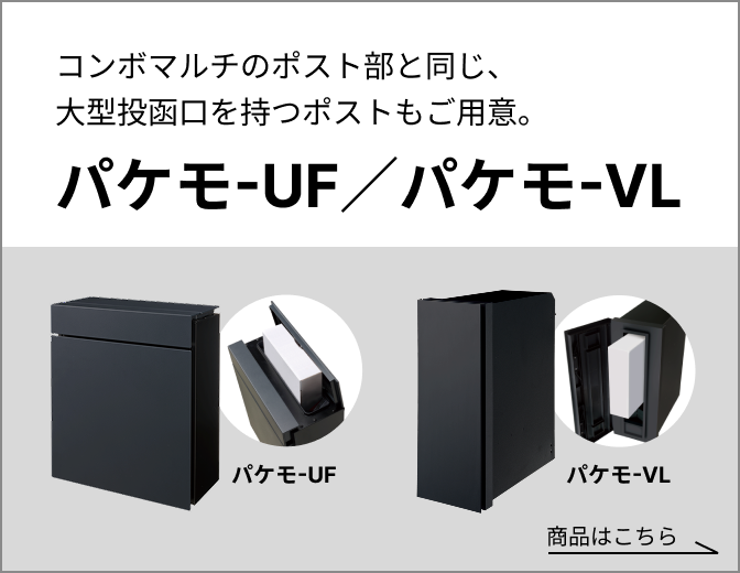 おすすめは大型郵便物を受け取れるポストと複数の荷物が受け取れる宅配ボックスが一つになった「コンボマルチ」。再配達も抑えられる上、宅配ボックスを何台も設置する必要がなく、すっきりとエントランスを作れます。