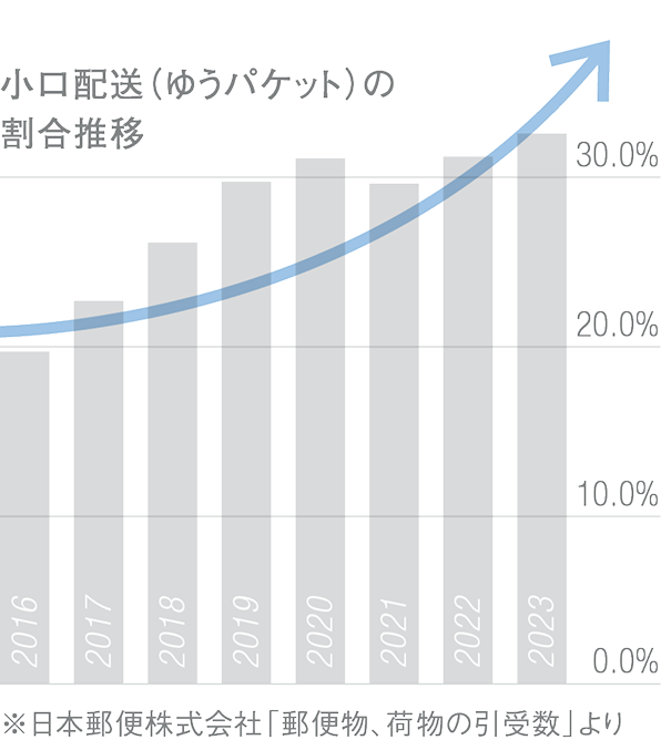 フリマアプリやネットオークションなどでよく利用される大型郵便物。厚さ7cmのタイプなども登場し増加傾向にあります。ただ、ポストに入らないことがあり、宅配ボックスに投函されることも。そうなると、本来受け取るはずだった荷物が再配達、ということに。また、1日に何個も荷物が届くことがあると、宅配ボックスがひとつでは足りません。