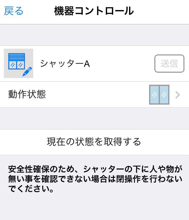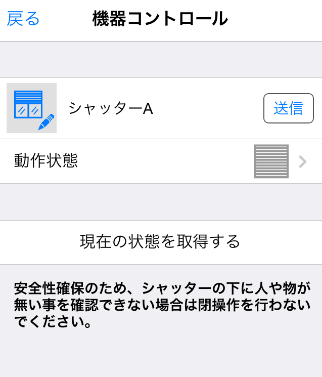操作したいシャッターの表示をタップすると、操作画面が表示されます。