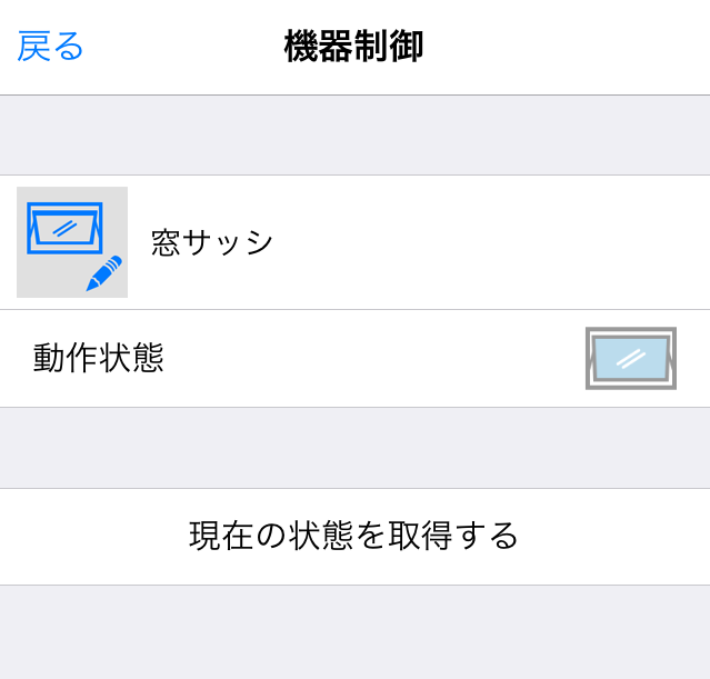 動作状態を確認したい窓サッシの表示部分をタップすると、窓サッシの動作状態の画面が表示されます。