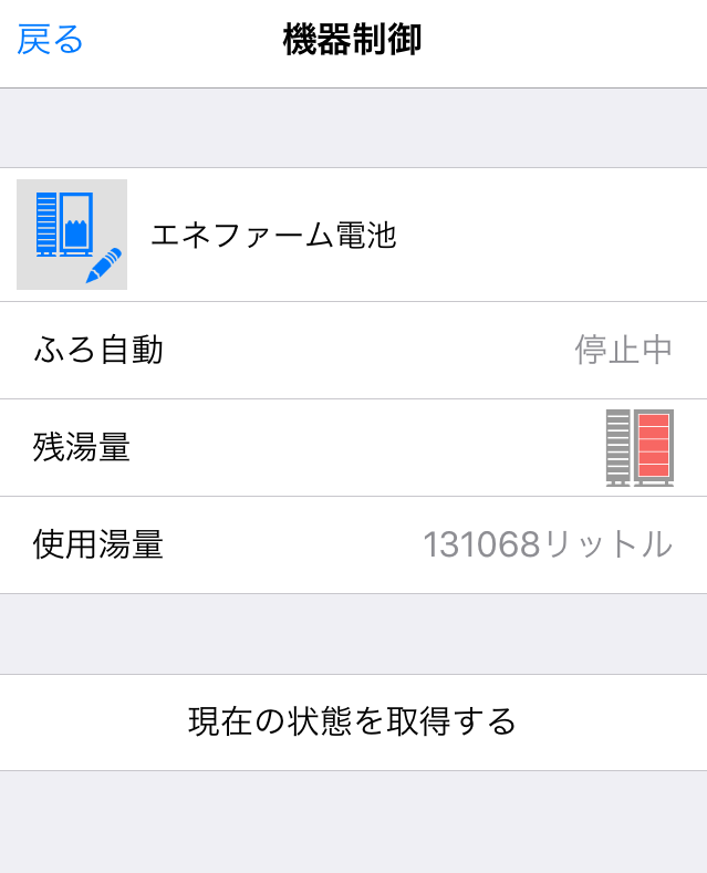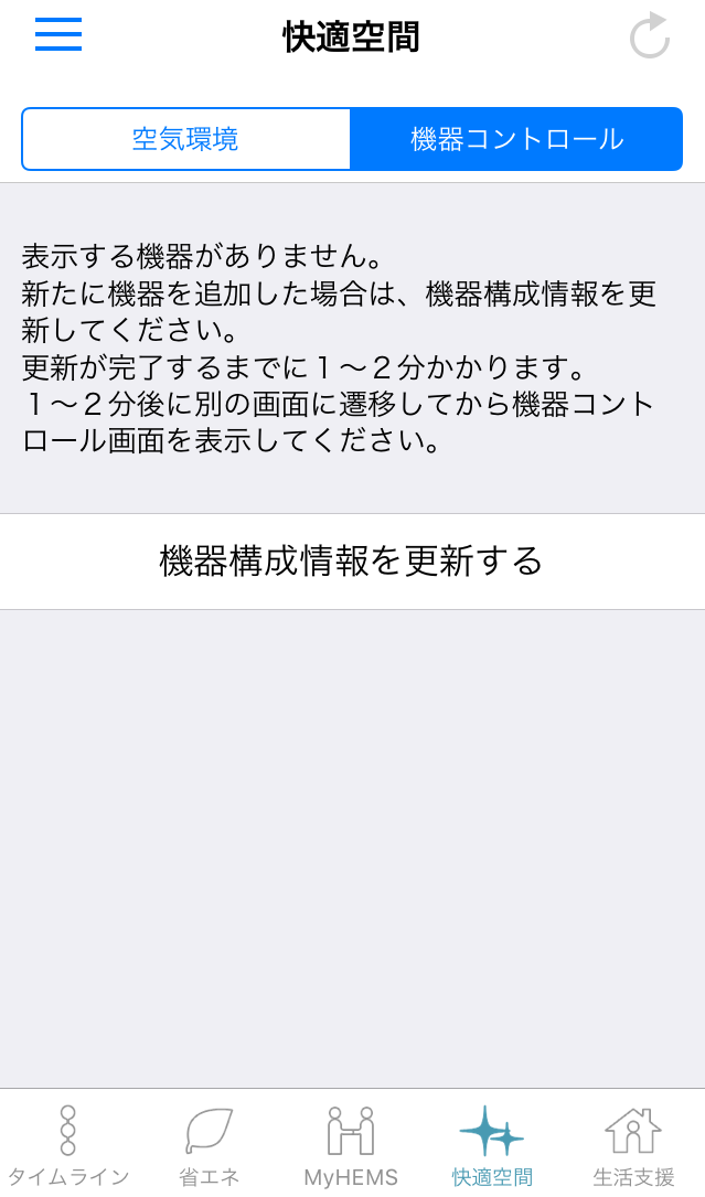 ボタンをタップすると、表示されている機器の状態を更新することができます。