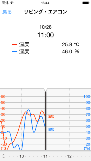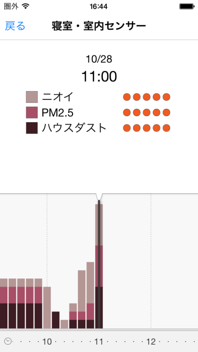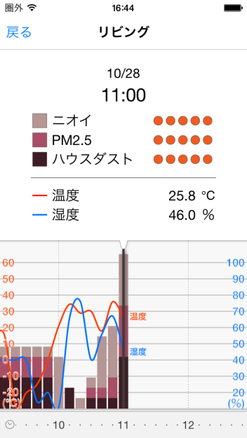 機器情報表示部分をタップすると、機器ごとの空気環境の推移グラフが表示されます。