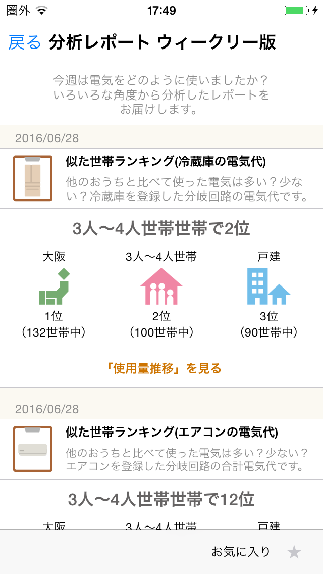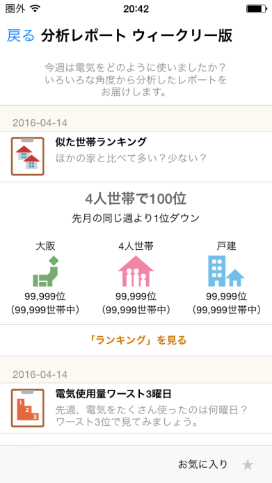 - 「似た世帯ランキング(先週の電気代)」は、第2火曜日にお届け