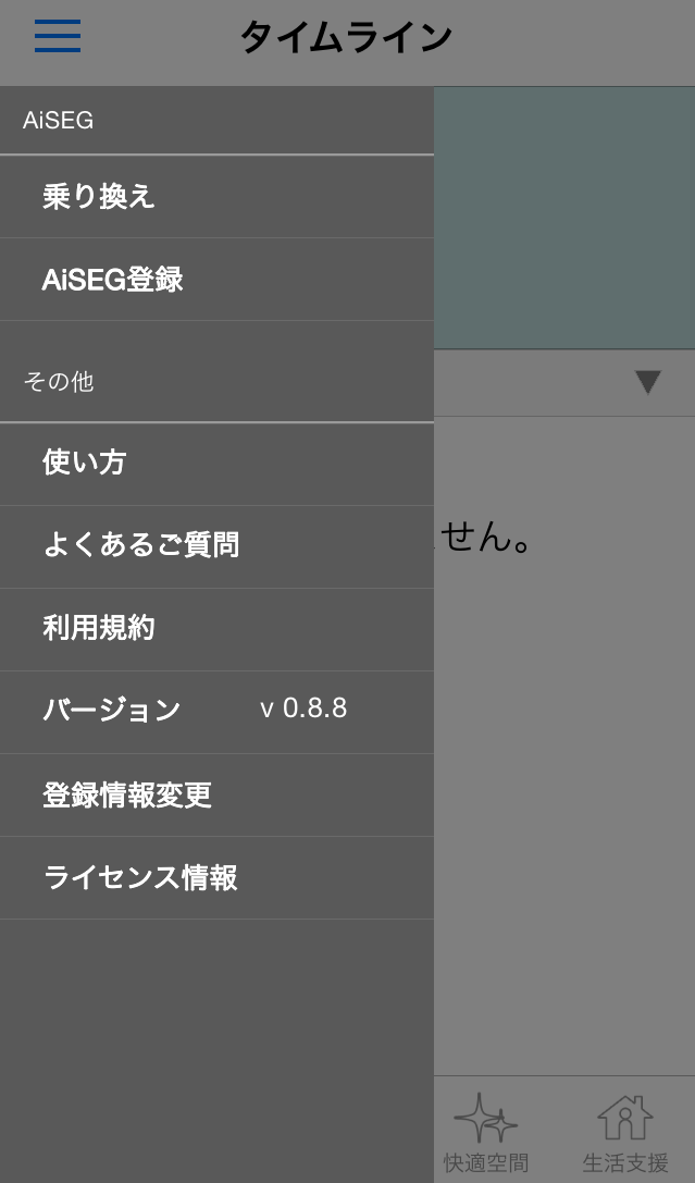 新たに設置されたAiSEGの機器コードと、AiSEG画面で発行された連携コードを入力し、お手元のスマートフォンとAiSEGを接続します。この操作で、AiSEGのデータがスマートフォンに表示されるようになります。 機器コード、連携コードにつきましては、「用語・メッセージの説明」をごらんください。
