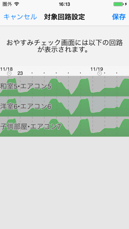 - 表示されたグラフから選択した対象回路に間違いが無いかを確認し、保存ボタンをタップします。